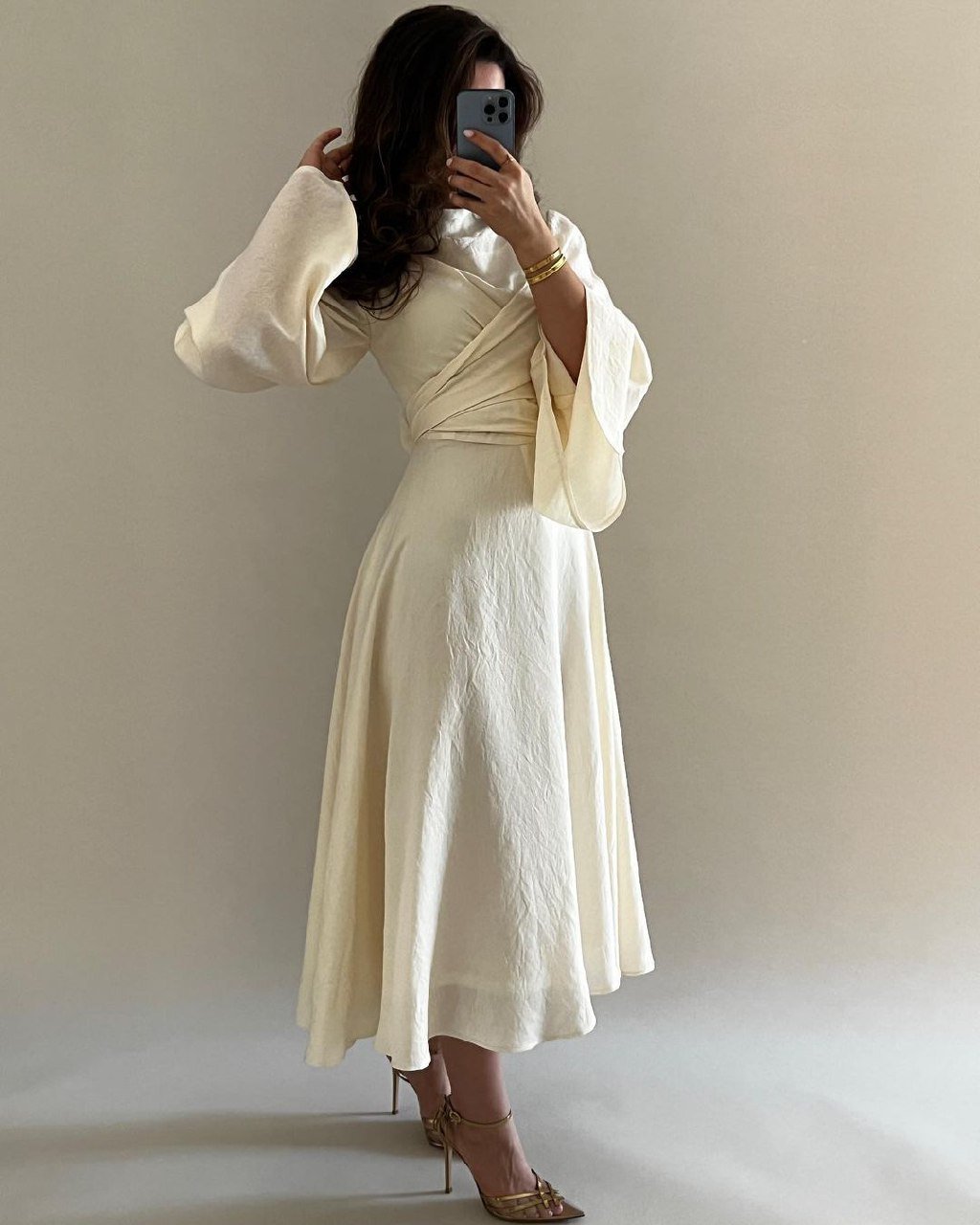 يُنصح بعدم استخدام المكواة بحرارة عالية على الفستان،