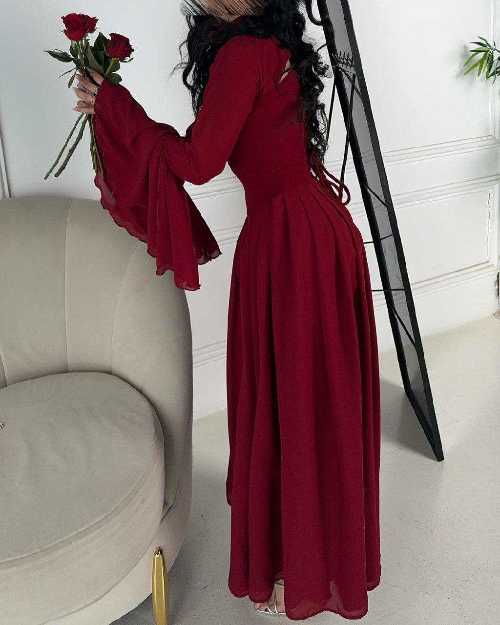 يُنصح بعدم استخدام المكواة بحرارة عالية على الفستان،