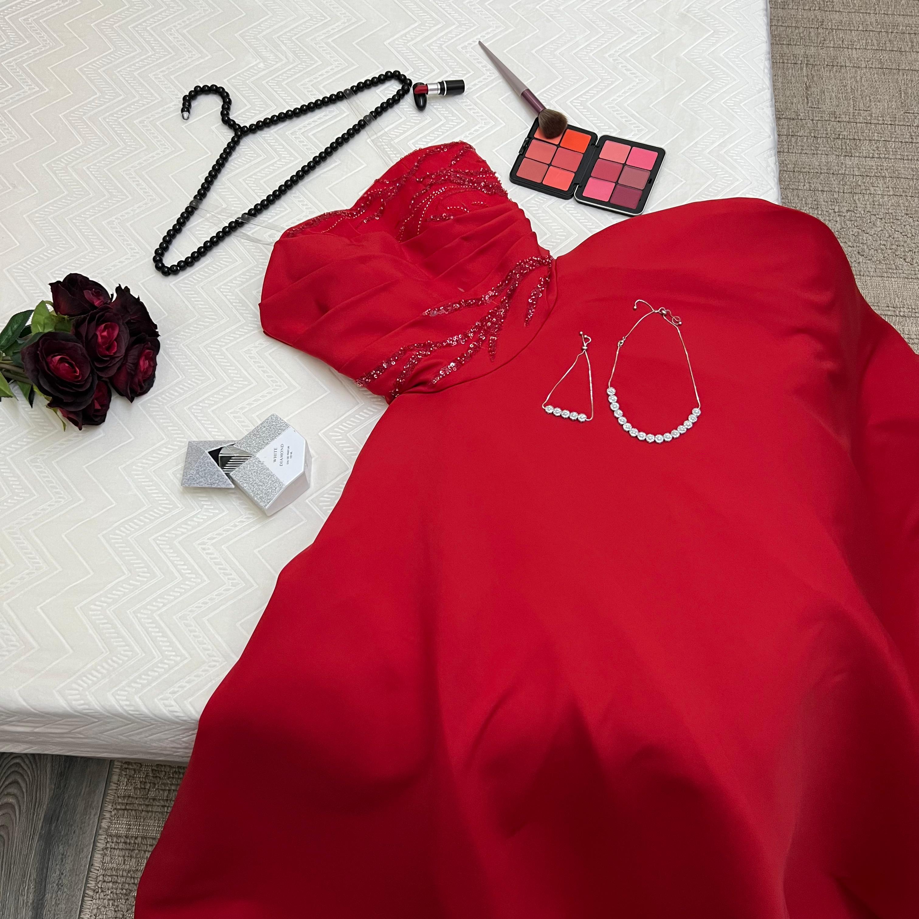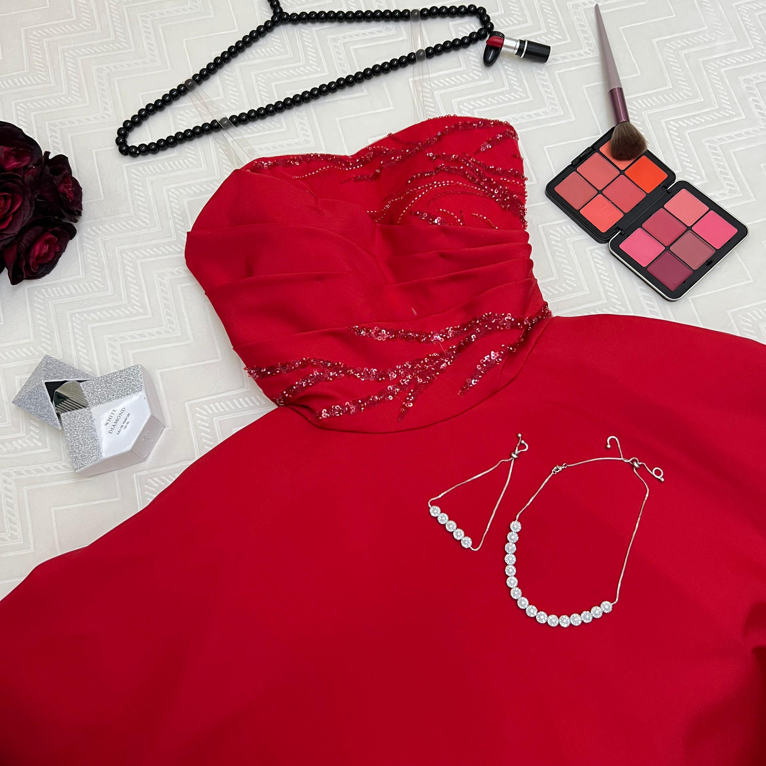 كلفة متقنة تضفي لمسة فاخرة وتزيد من تألق الفستان.