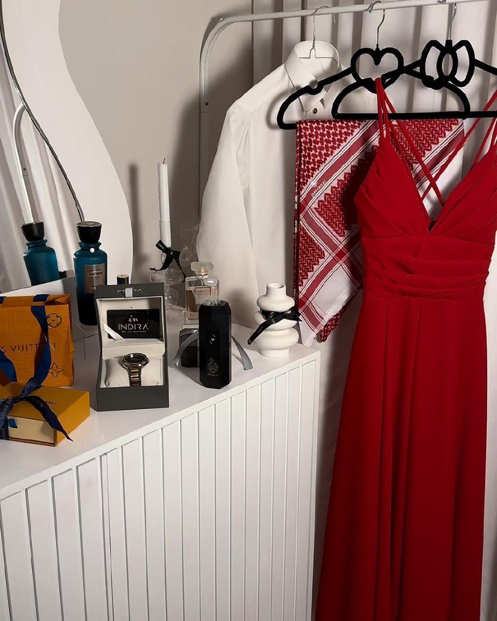يُفضل تخزين الفستان في مكان جاف ومناسب، مع تجنب تعرضه لضغط أو تجاوز الأشياء الثقيلة عليه.