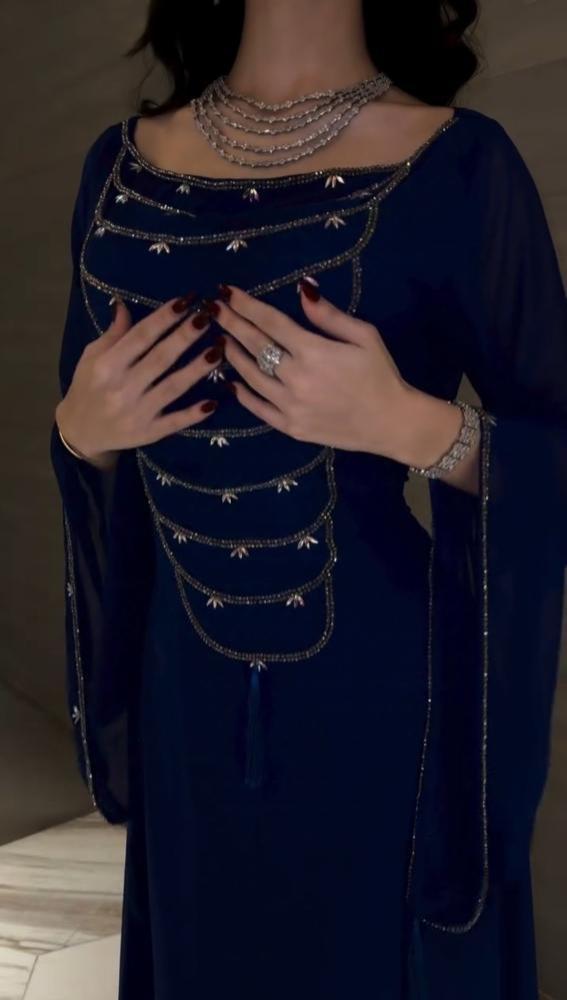 - الخامة : الشيفون بتصميم ناعم مطرز